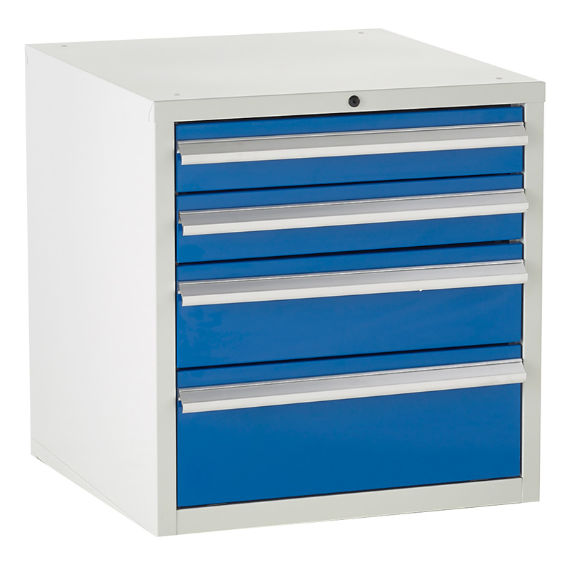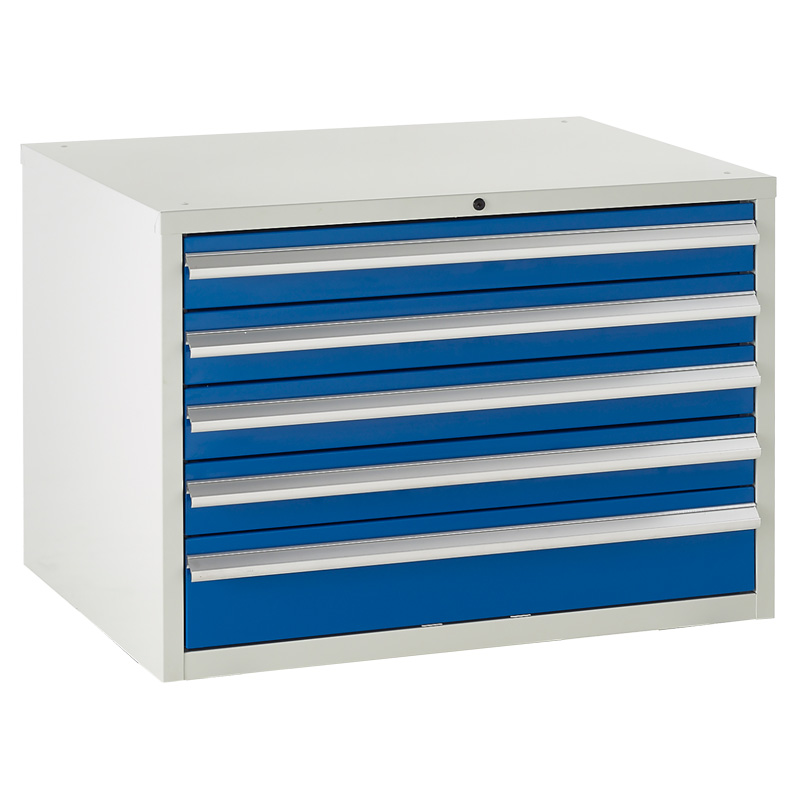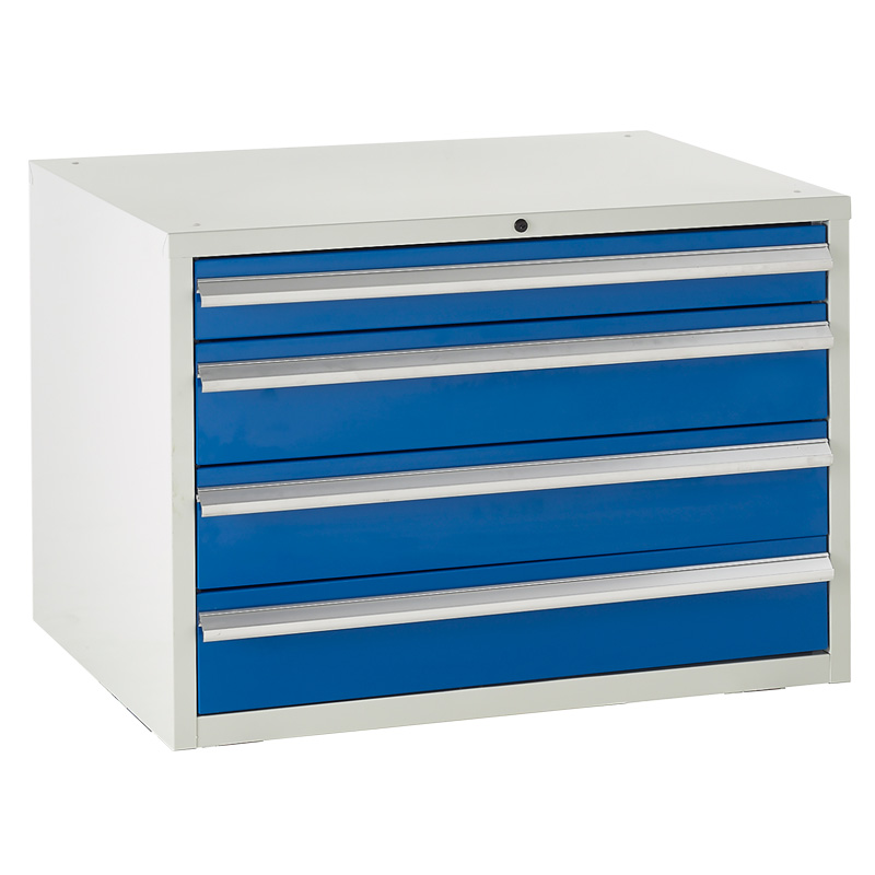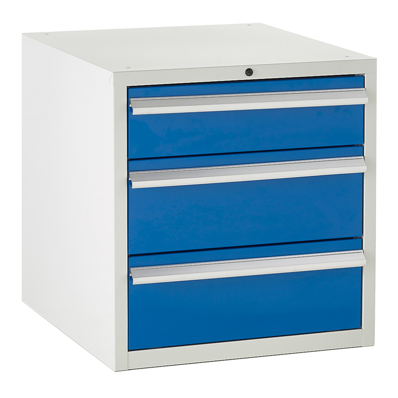 Euroslide benches come with a wide range of storage options, including drawer units and cabinets designed for efficiency and convenience. Each unit includes a central locking system (with two keys) to keep tools and materials secure. Internal perforated panels allow for tool clip attachments, helping maintain a tidy workspace. Drawers are full width, capable of holding up to 100kg, and are fitted with precision ball-bearing slides and anti-tilt mechanisms for smooth, safe operation. Storage units are available in four colours: blue, red, green, and dark grey.